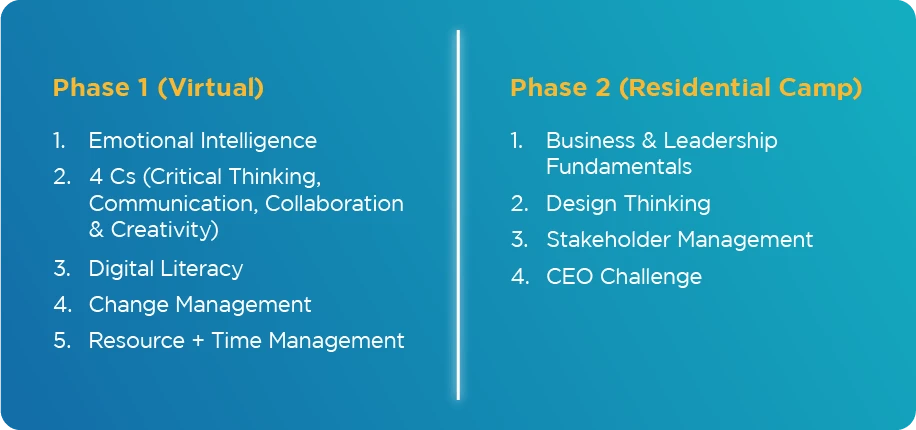 Participants are expected to actively attend both the virtual and residential camp through the 14-days, including workshops, group activities, team building, business simulations and challenges. Failure to meet the minimum attendance requirement may result in the forfeiture of the programme certificate.