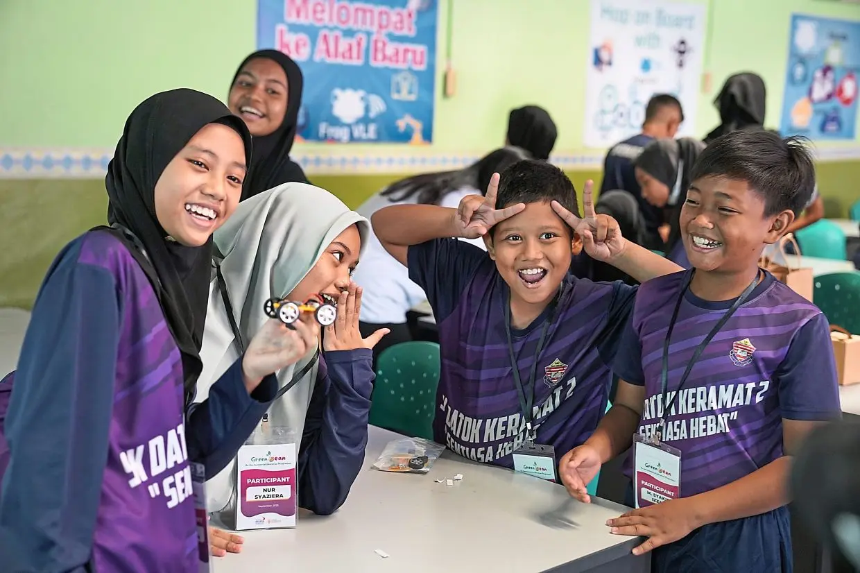 Enthusiastic pupils from SK Taman Segar learn the art of constructing a solar-powered car.