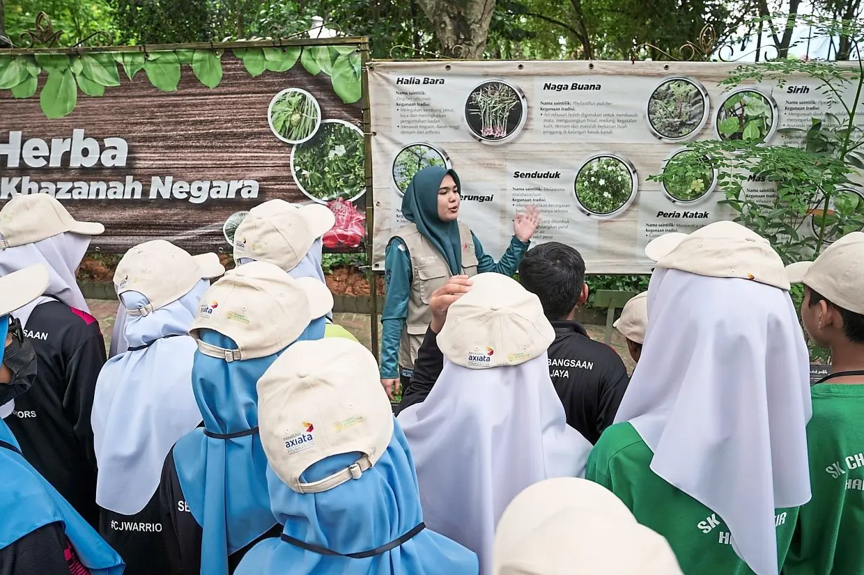 SK Cheras Jaya pupils learning about the many different kinds of plants during their outdoor trip.